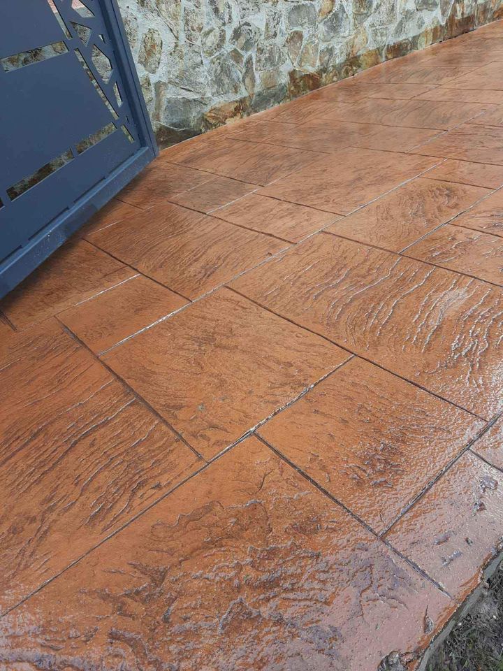 Beton amprentat aplicat profesional pentru trotuare, cu modele unice și culoare personalizabilă. Perfect pentru spații rezidențiale sau publice.